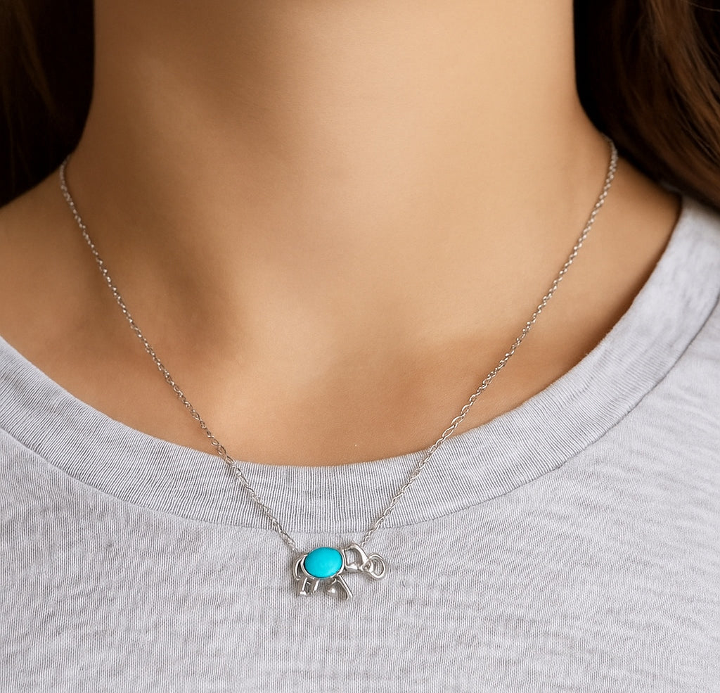 Sterling Silver Elephant Turquoise Necklace